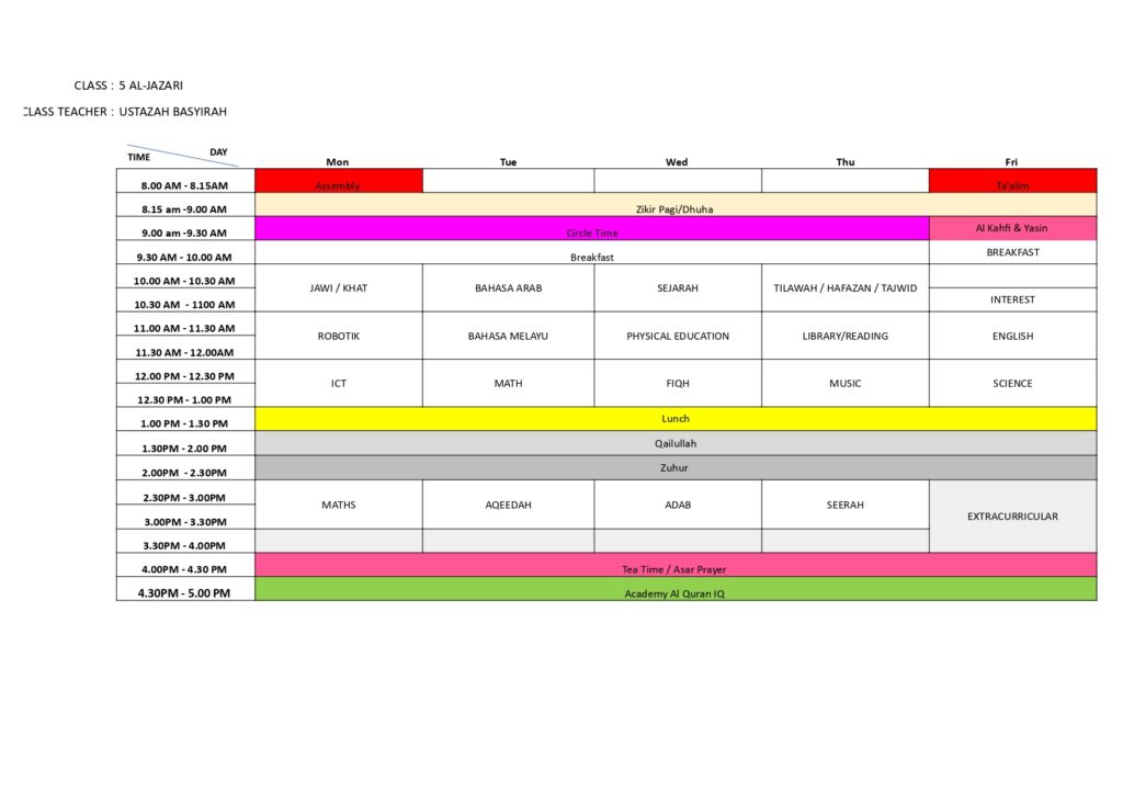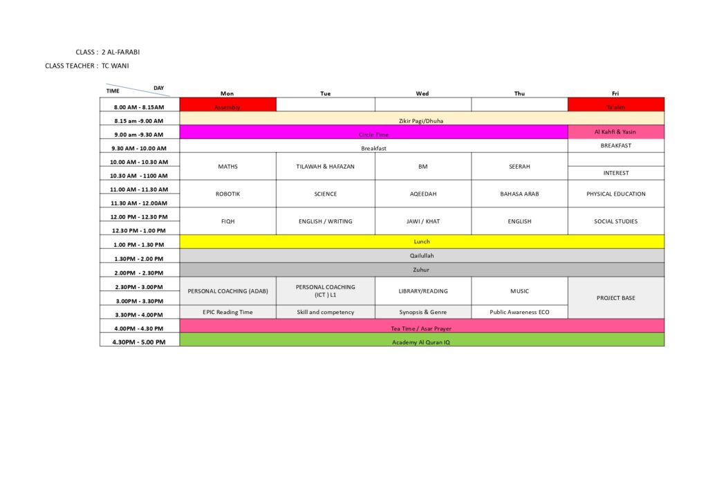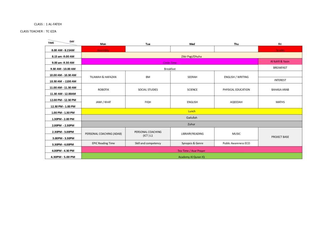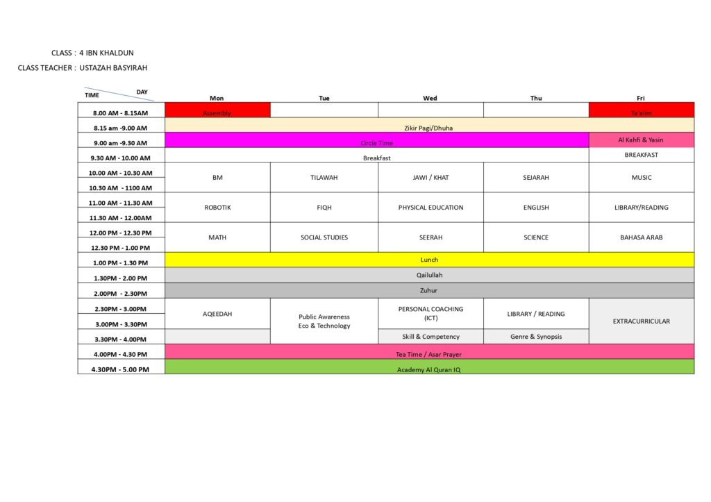 SRI Nur Khalifah Class Schedule